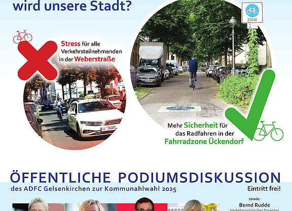 Gelsenkirchen steigt auf! Wie fahrradfreundlich wird unsere Stadt? Öffentliche Podiumsdiskussion des ADFC Gelsenkirchen zur Kommunalwahl 2025
