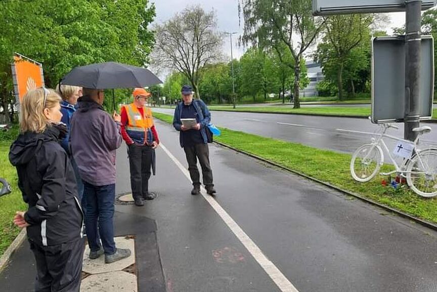 Am 5. mai 2023 haben wir ein sog. Ghostbike, also ein weiß lackiertes Fahrrad, für einen tödlich verunfallten Fahrradfahrer aufgestellt